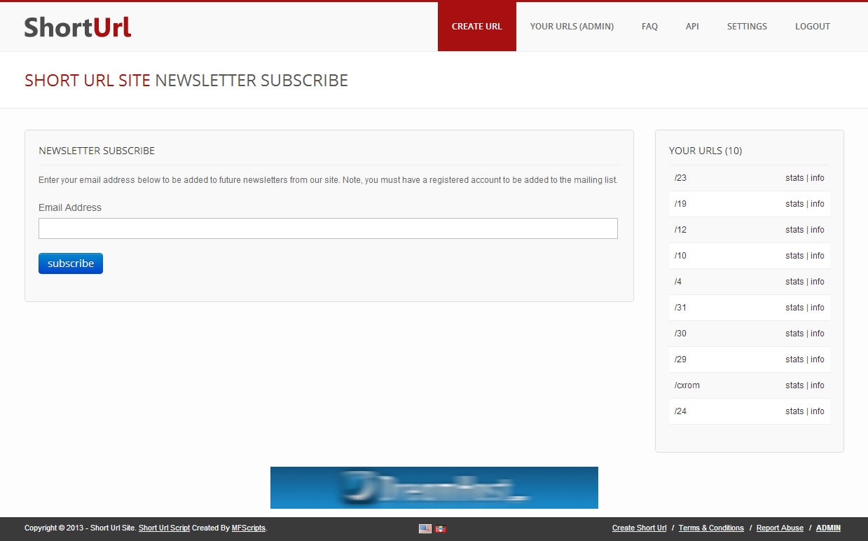 Unsubscribe page so users can remove themselves from the mailing list. This page is automatically linked into every email sent.
